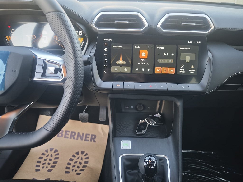 EXTERIÉR, Vyhrievané vonkajšie spätné zrkadlá, Elektricky ovládané sklopné vonkajšie spätné zrkadlá, Hliníkové disky 17“ (215/55 R17), Strešné nosiče, Dažďový senzor, SVETLÁ, LED denné svietenie, LED svetlomety, LED zadné svetlá, Svetelný senzor, INFOTAINMENT, Digitálny 7“ prístrojový panel, Dotykový displej 12,3“, Rádio AM/FM/DAB+, Navigačný systém, Apple CarplayTM / Android AutoTM, 6 reproduktorov, 2 USB porty, Bezpečnostná výbava, •Alarm a systém proti krádeži, •Asistencia pri udržiavaní v jazdnom pruhu (LKA), •Asistencia pri zmene jazdného pruhu (LCA), •Automatické núdzové brzdenie (AEB), •Bočné airbagy pre vodiča a spolujazdca, •Bočné závesné airbagy pre vodiča a spolujazdca, •Mechanická ručná brzda, •Núdzové udržanie v jazdnom pruhu (ELK), •Obmedzovač rýchlosti, •Predné airbagy pre vodiča a spolujazdca, •Prepínač bočného airbagu pre spolujazdca, •Senzor tlaku v pneumatikách TPMS, •Sledovanie mŕtveho uhla (BSD), •Štart/stop systém, •Systém E-CALL, •Systém pomoci pri dodržiavaní rýchlosti (SAS), •Upozornenie na čelné kolízie (FCW), •Upozornenie na križovanie cestnej premávky zozadu (RCTA), •Upozornenie na opustenie jazdného pruhu (LDW), •Upozornenie na ospalosť (UDW), •Výškovo a pozdĺžne nastaviteľný volant, •Zadná kamera, •Zadné parkovacie senzory, •Zadné sedadlo ISOFIX s horným a dolným upevnením, Komfort, •360° parkovacia kamera, •Bezkľúčové otváranie dverí, •Bezkľúčové štartovanie, •Čalúnenie sedadiel v eko koži, •Digitálna klimatizácia, •Elektrické okná vpredu a vzadu, •Elektricky nastaviteľné sedadlo vodiča v 6 smeroch, •Predná stredová opierka s úložným priestorom, •Sedadlo spolujazdca nastaviteľné v 4 smeroch, •Sedadlo vodiča s manuálnym nastavením bedrovej opierky, •Sklopné zadné sedadlo v pomere 60:40, •Vrecká na zadnej strane predných sedadiel, •Vyhrievané predné sedadlá